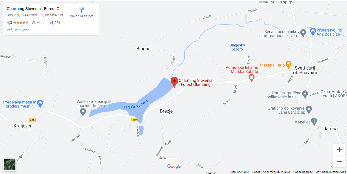 Naslov prizorišča 18. Blaguškega teka: Charming Slovenia - Forest Glamping resort Blaguš - Brezje 9 , 9244 Sv. Jurij ob Ščavnici
